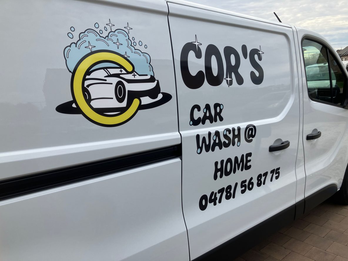 Bij De Stikkie Shop realiseerden we recent de belettering van een witte camionette voor een mobiel carwashbedrijf. Het voertuig werd voorzien van een opvallend, kleurrijk logo in combinatie met speelse zwarte tekst, waardoor het bedrijf voortaan beschikt over effectieve rijdende reclame die opvalt in het straatbeeld.