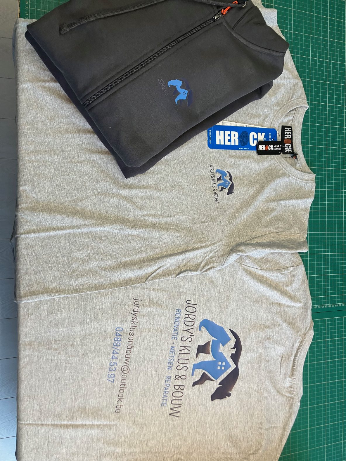 Kledij via ons: Wij zorgen voor T-shirts, werkjassen of polo’s die we voorzien van jouw bedrukking.